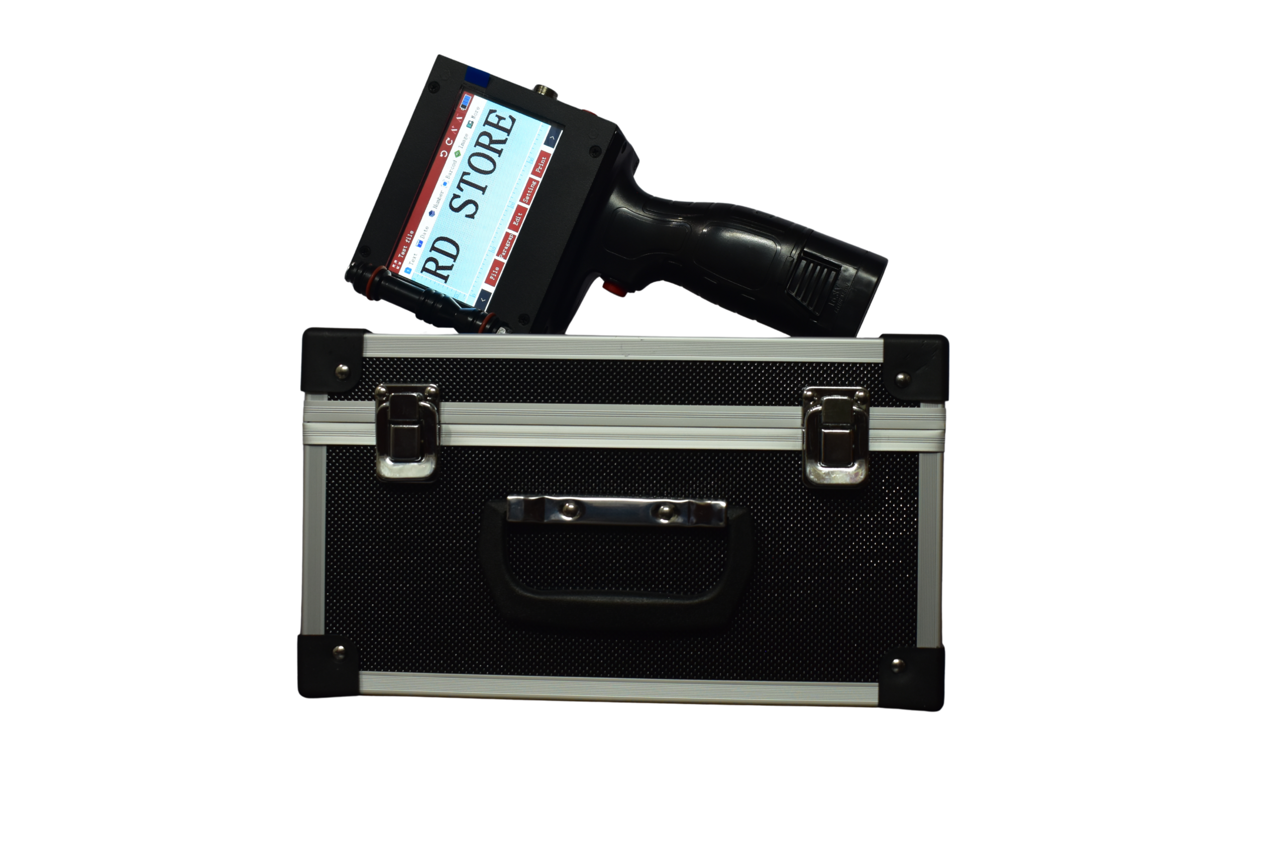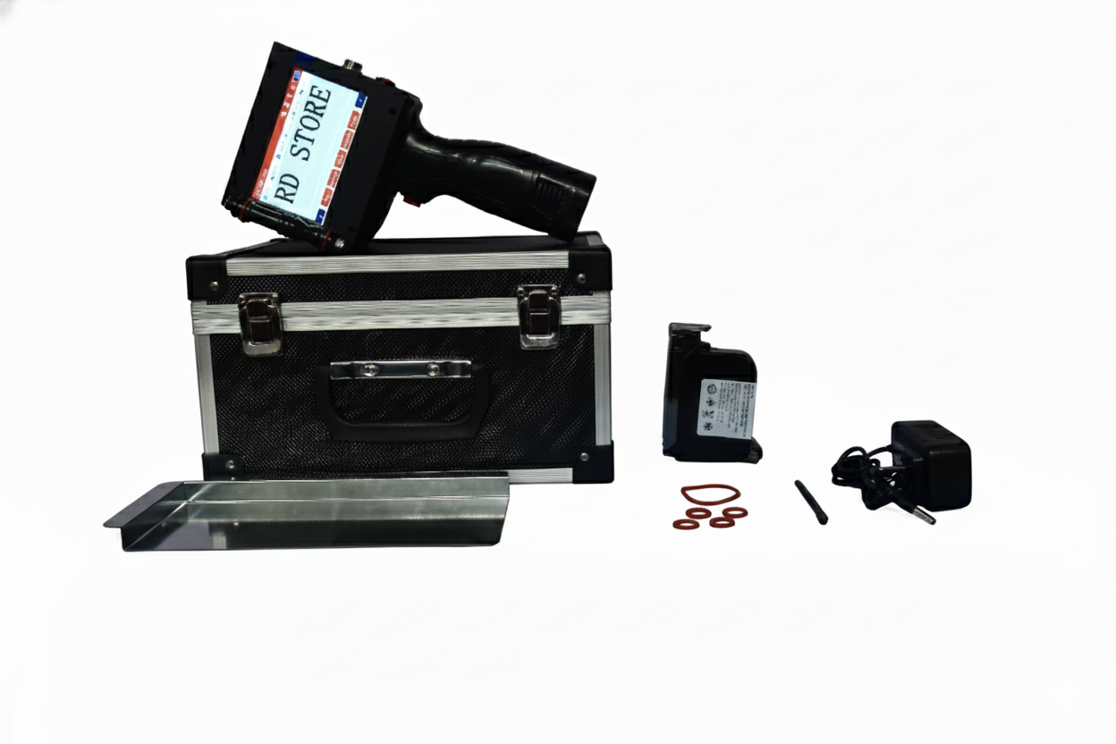 The 12.7 mm Handheld Inkjet Printer with HP 2590 W3T10B Black Solvent Cartridge is a compact, reliable, and high-performance coding solution designed for clear, fast-drying printing on non-porous surfaces. Featuring a half-inch (12.7 mm) print height, this handheld printer is ideal for batch numbers, expiry dates, MRP, manufacturing dates, barcodes, QR codes, logos, and variable data.